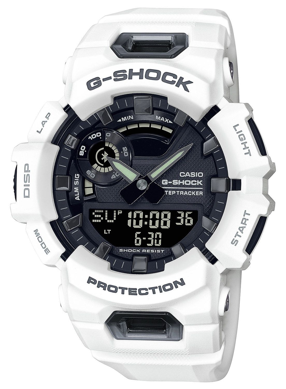 stoßfeste Armbanduhr mit digitaler und analoger Zeitanzeige, batteriebetriebenes Quarzwerk, via Bluetooth mit dem Smartphone koppelbar, automatischer Kalender mit Datum, Monat und Wochentag, 12-/24-Stunden-Format, Schrittzähler, Lifelog Funktion, zweite Zeitzone einstellbar, Stoppfunktion, 50 Rundenspeicher, 5 Countdown-Timer, 5 unabhängige Tagesalarme, Tastentöne ein/aus, Hand Moving Funktion, Phone Finder, eingehende Anrufe werden angezeigt, schwarzes Zifferblatt, lumineszierende Zeiger und er