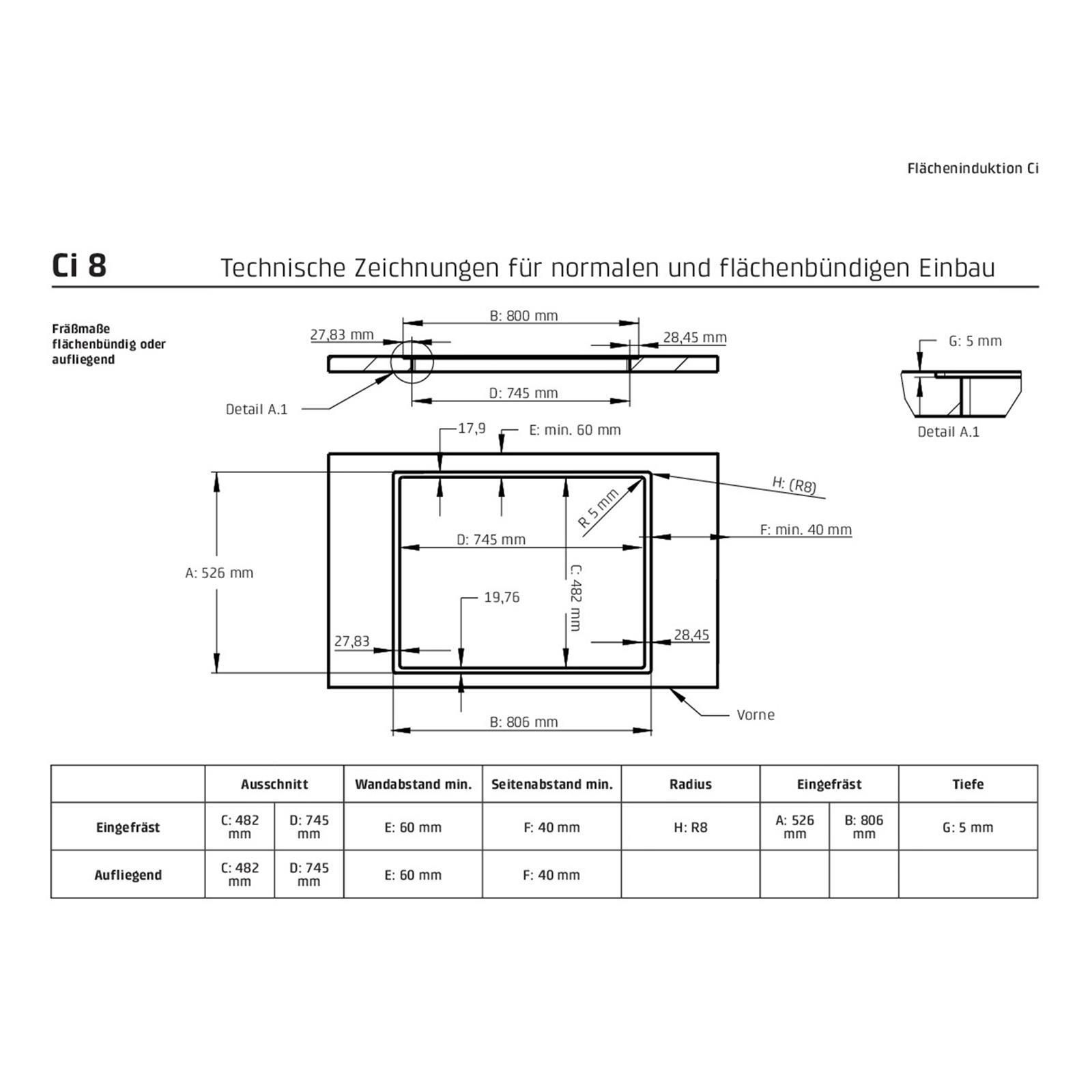CasoDesign Kochfeld 80 cm Induktion Einbau autark Flächeninduktion 4 Zonen