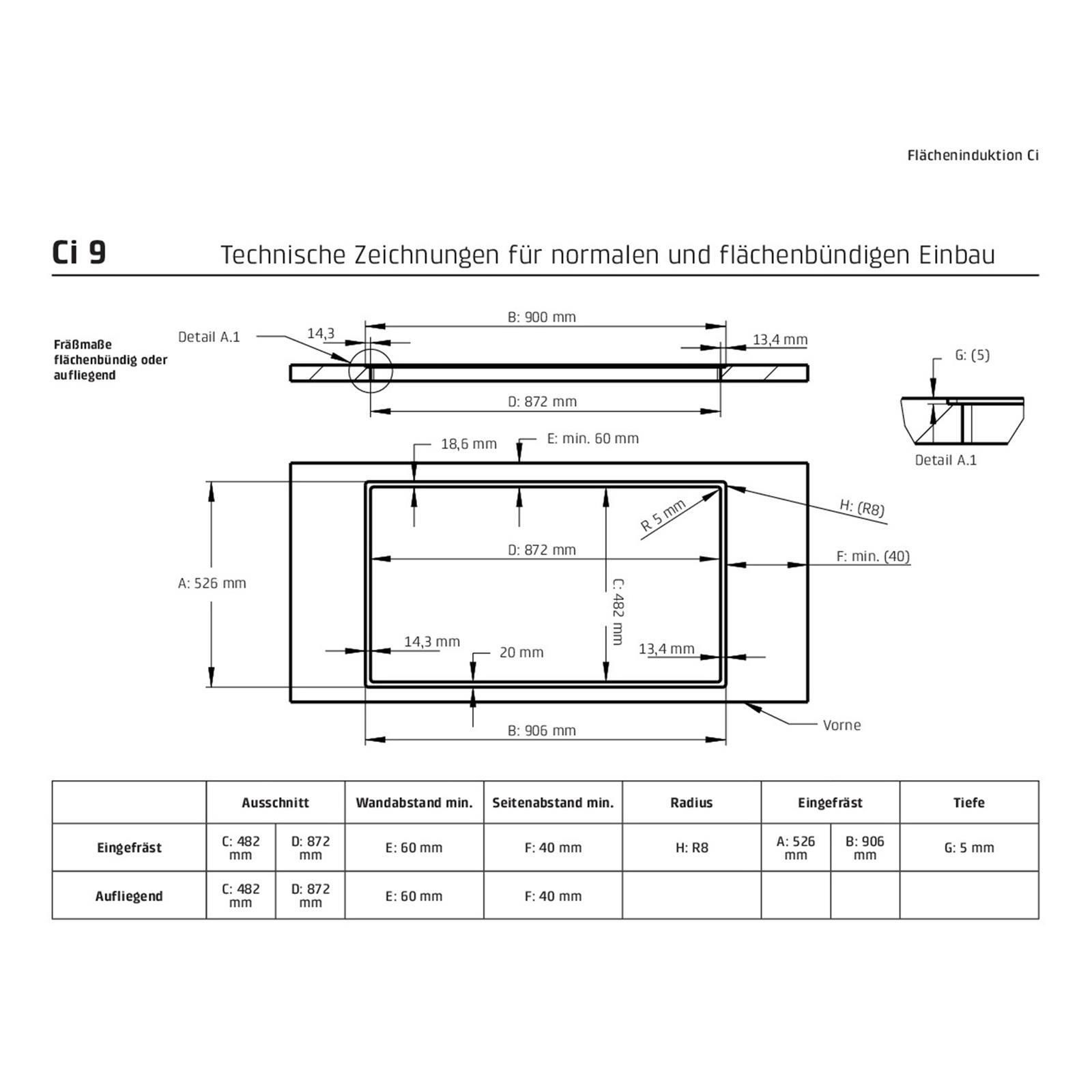 CasoDesign Kochfeld 90 cm Induktion Einbau autark Flächeninduktion 6 Zonen