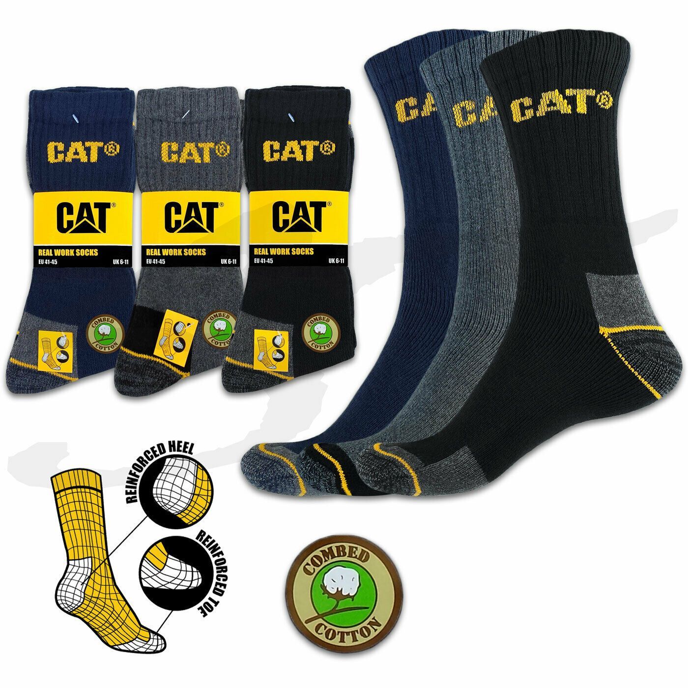 CAT® Caterpillar REAL WORK Herren Arbeitssocken Arbeits Sneaker Business Socken