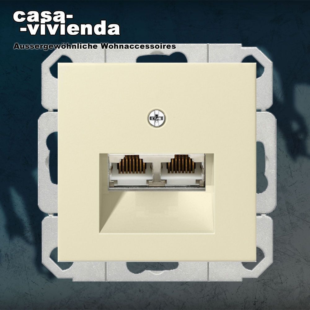 casavivienda Außergewöhnliche Wohnaccessoires ... ...anders als alle Anderen... CAT6 Kombi-Anschlußdose Netzwerkdose Cat6A 2xRJ45 - mit GIRA-Abdeckung® Farbe Cremeweiß glänzend (01) - passend zu KLEIN55® Glasrahmen, GIRA Standard 55® und GIRA E2® (Abdeckung original GIRA®) Verwendung: p assend für S