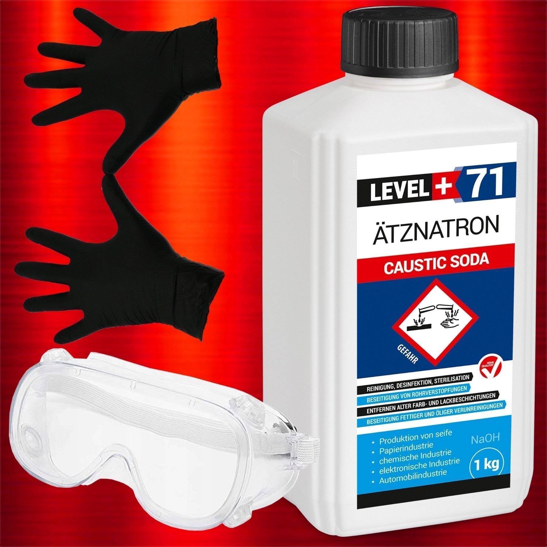 Caustic Soda Rohrreiniger 1kg Seifenindustrie + Schutzbrille + Handschuhe RM71