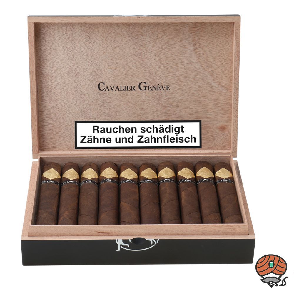 Cavalier Genève Black II Toro Gordo Zigarren 20er Kiste Die Cavalier Genèver Black II wurde eigentlich für den amerikanischen Markt entwickelt ist seit 2017 aber auch in Europa und Deutschland erhältlich. Die Black II ist mit etwas kräftiger als die White und die Inner Circle Serien. Ausgestattet is
