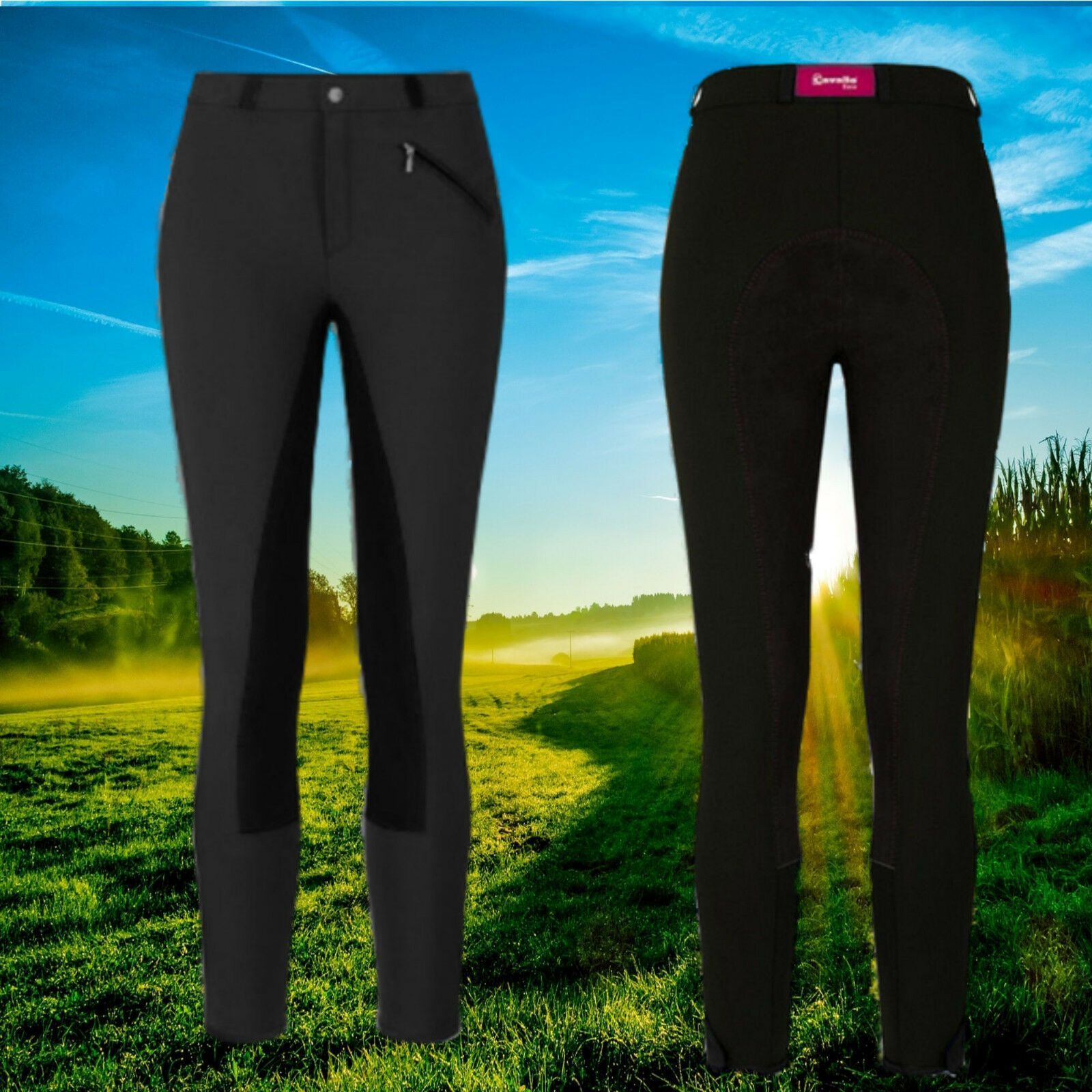 CAVALLO Reithose Cathy in schwarz • Modische Kinderreithose • 3 4 Vollbesatz aus Cavasoft • Farbe: schwarz • sehr weich und elastisch • niedrige Leibhöhe • Reißverschlusstasche vorne • Beinabschluss mit Klett • ohne Seitennaht • 30° waschbar Material: