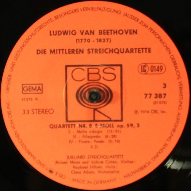 CBS 77 387 - Ludwig van Beethoven, Juilliard String Quartet - Die Mittleren Stre