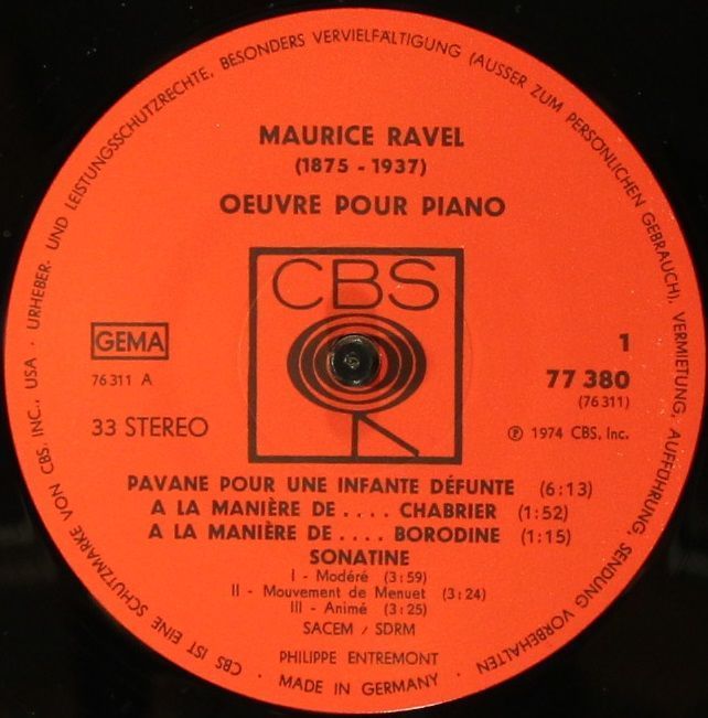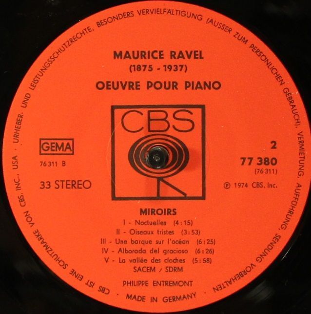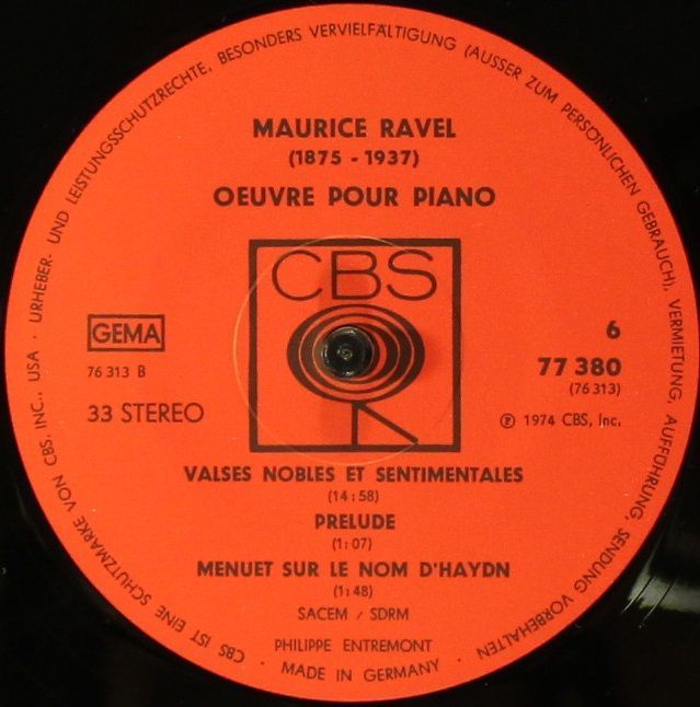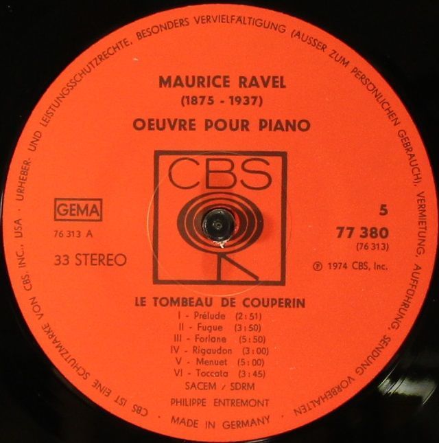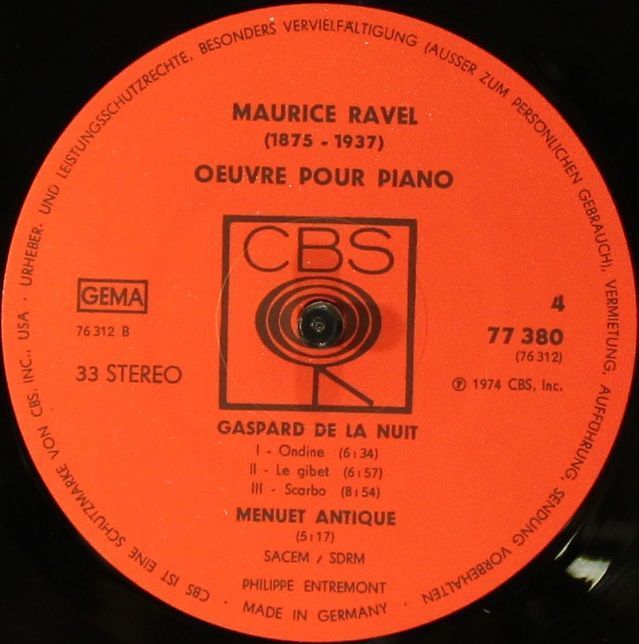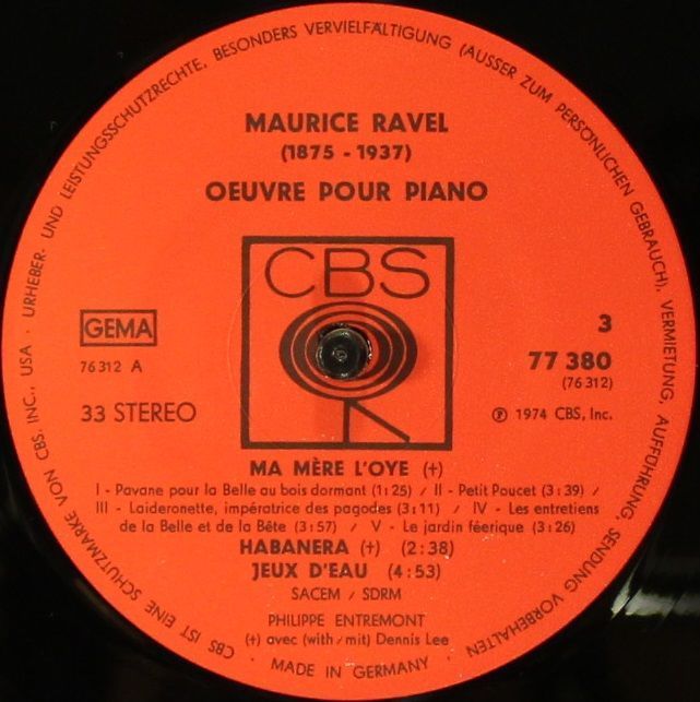 CBS 77380 - Maurice Ravel, Philippe Entremont, Dennis Lee (2) - Oeuvre Pour Pian