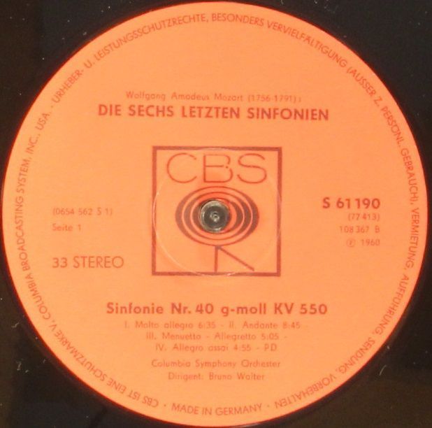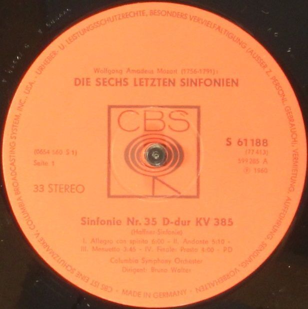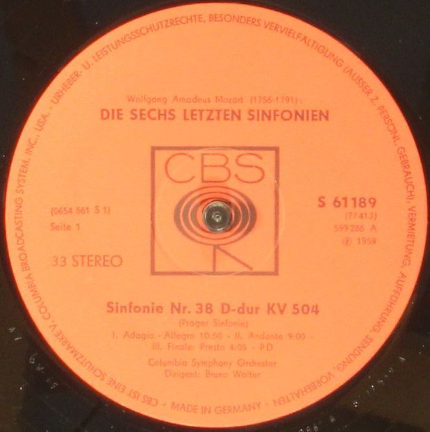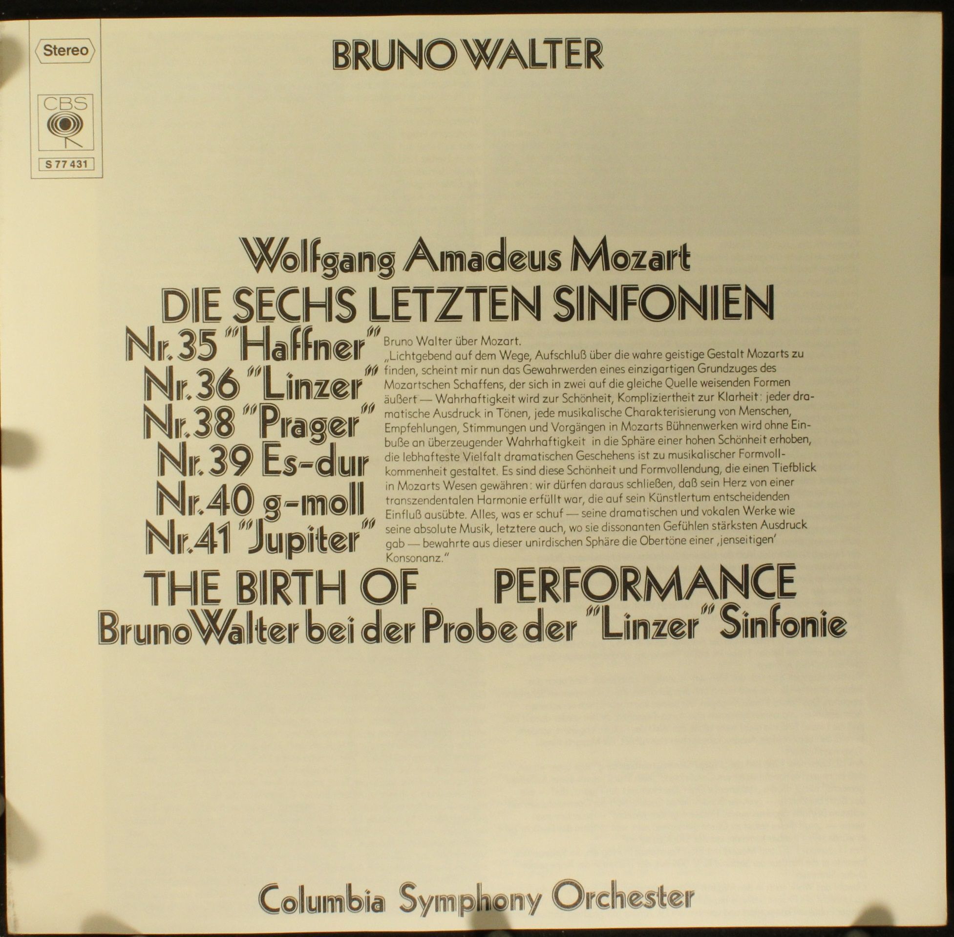 CBS S 77413 - Bruno Walter, Wolfgang Amadeus Mozart, Columbia Symphony Orchestra