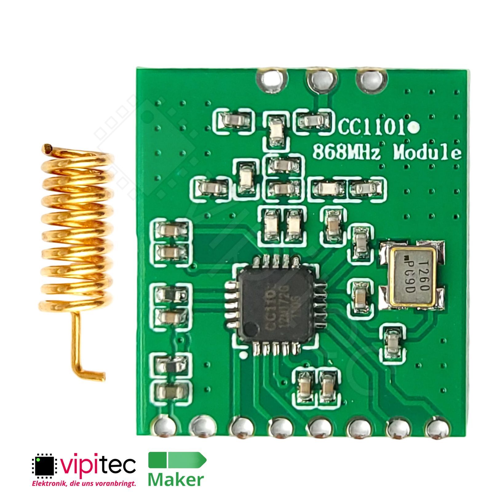 Warenkorb vipitec Shop Aktuelle Angebote Kontakt Komponenten > Kommunikation CC1101 - 868 MHz Funk-Transceiver-Modul Spezifikation: CC1101, 1,8..3,6 V, 863..870 MHz In unserem Shop finden Sie weitere Komponenten für Ihre Elektronikwerkstatt. Dieses Produkt ist ein Transceiver-Modul (Sender und Em