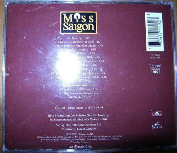 CD Album: A. Boublil & C.M. Schönberg - Miss Saigon (Dt. Originalaufnahme (1995)