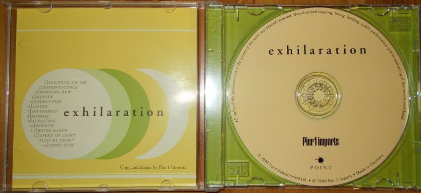 Sie bieten auf das CD-Album Exhilaration - Upbeat Music to Help You Regain Your Sense of Harmony . Mit einem Startpreis von 1 €uro ein echtes Schnäppchen! Sparen Sie Versandkosten, indem Sie gleich mehrere CDs von mir ersteigern! Trackliste 1 Floating On Air 2 Effervescene 3 Morning Dew 4 Heave