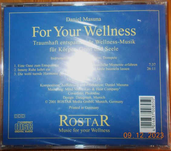 CD Album: "For Your Wellness" Wellnessmusik von Daniel Masuna (2001, NEU, OVP)