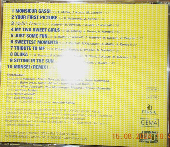 Sie bieten auf das CD-Album Melli's Dance von den Firehorns . Bei einem €uro Startgebot ein echtes Schnäppchen! Und: sparen Sie Versandkosten, indem Sie noch weitere CDs von mir ersteigern! Trackliste 1 Monsieur Gassi Komp: Kunze, Joachim Arr: Kunze, Joachim Orchester: Firehorns Dauer: 00:04:11