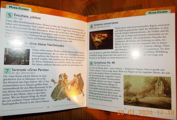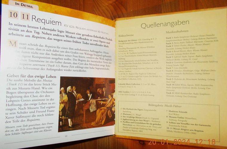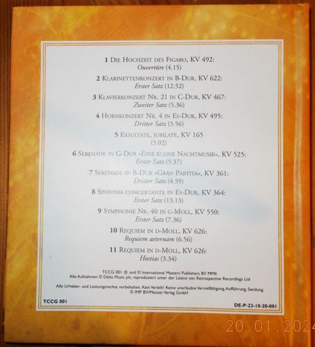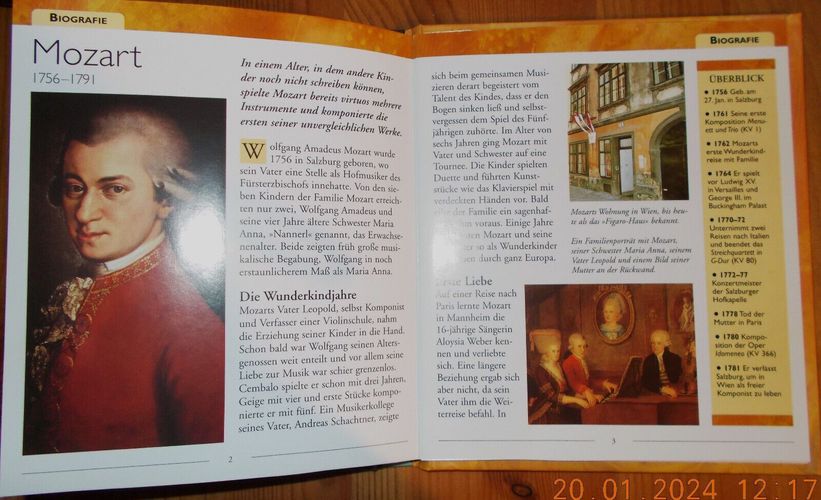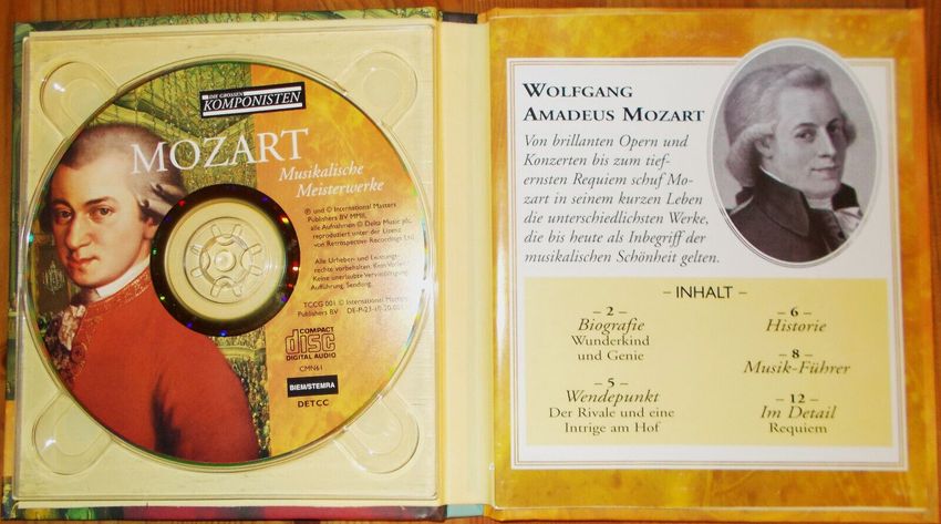 Sie bieten auf das Album Mozart – Musikalische Meisterwerke aus der Reihe Die großen Komponisten . Die CD ist gebraucht, aber für 1 €uro Startgebot ein echtes Schnäppchen. Dazu befindet sich im Innenteil ein farbig illustriertes Büchlein mit den Kapiteln Biografie, Wendepunkt, Historie, M