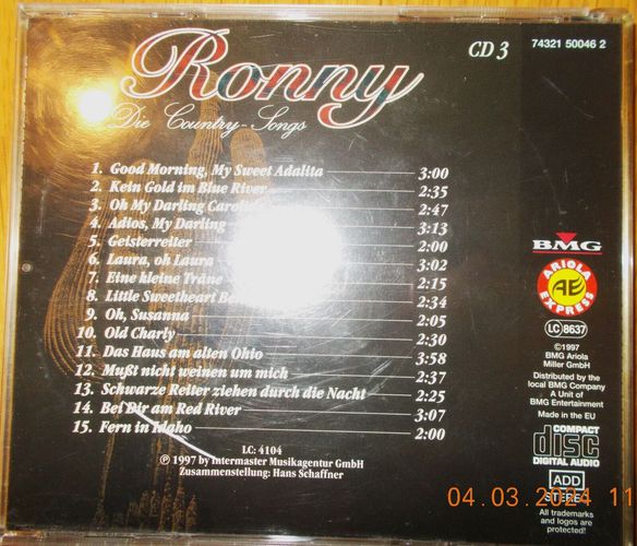 CD Album: "Seine Größten Erfolge, Die Country Songs, CD 3" von Ronny (1997)