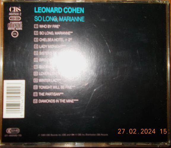 CD Album: "So Long, Marianne" von Leonard Cohen (1989)