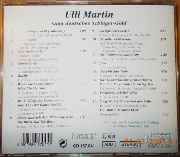 CD Album: "Ulli Martin Singt Deutsches Schlager-Gold" von Ulli Martin (1994)