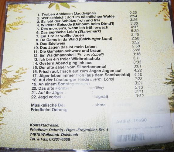 Sie bieten auf das CD-Album Urige Jäger- und Wilderer-Lieder von Friedhelm Oehmig . Mit einem Startpreis von 1 €uro für diese CD ein echtes Schnäppchen! Und: sparen Sie Versandkosten, indem Sie noch weitere CDs von mir ersteigern! Trackliste