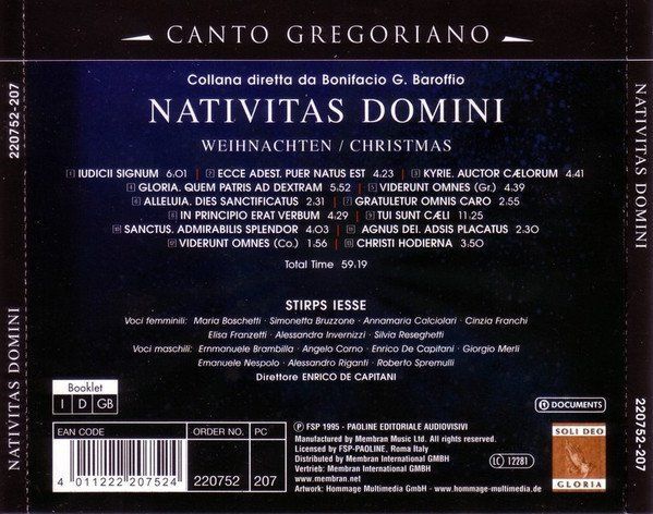 CD: Canto Gregoriano - Nativitas Domini (1995) Documents 220752-207