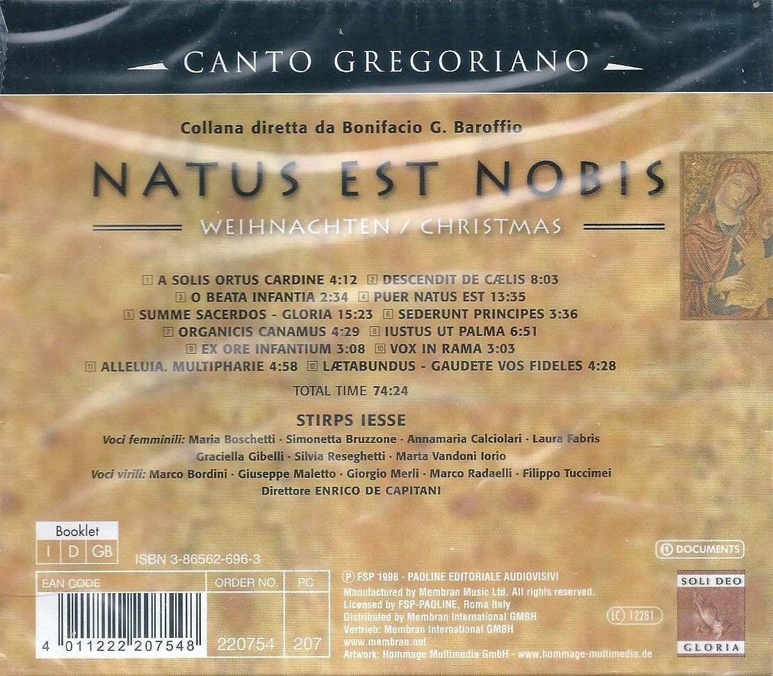 CD: Canto Gregoriano: Natus Est Nobis - Tempo Di Natale (1998) Documents 220754-207