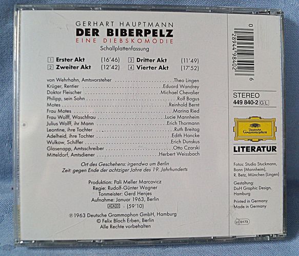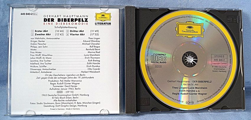 CD Gerhart Hauptmann - Der Biberpelz - Eine Diebskomödie mit Theo Lingen Die CD ist gebraucht und in einem guten Zustand (normale Gebrauchsspuren, siehe Foto) Der Name Gerhart Hauptmann, Der Biberpelz, Theo Lingen wird hier nur genannt, da er Bestandteil des Artikels ist. Der Artikel stammt aus eine