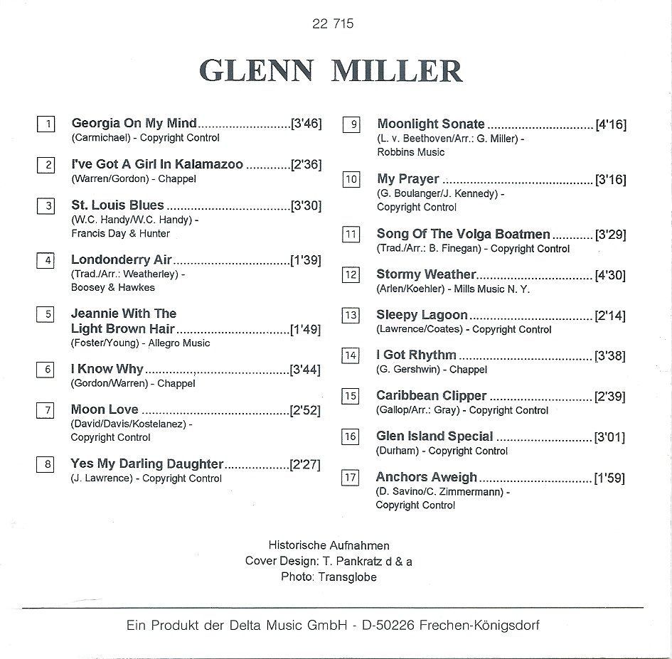 CD: Glenn Miller: Historische Aufnahmen (1995) It´s Music - 22 715