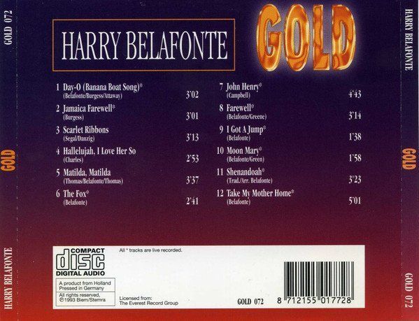 CD: Harry Belafonte: Gold (1993) GOLD 072