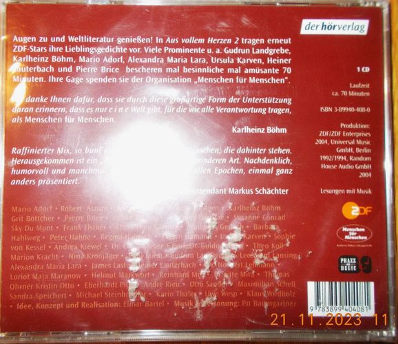 CD Hörbuch: "Aus vollem Herzen 2 - ZDF-Stars lesen für Menschen für Menschen", (2004)
