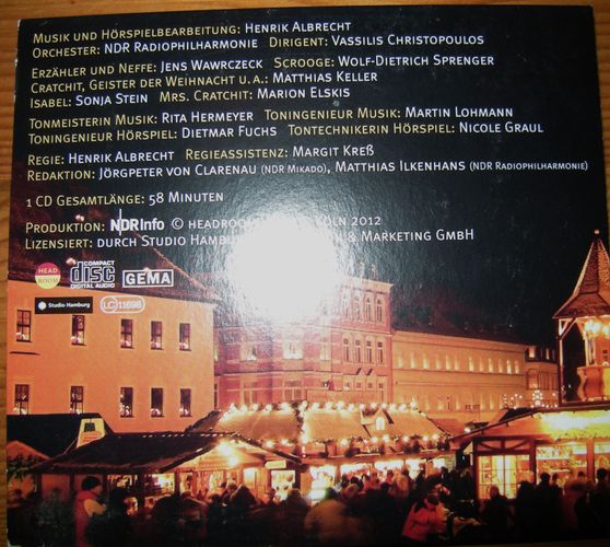 Sie bieten auf die Hörspiel-CD Eine Weihnachtsgeschichte nach Charles Dickens Ein Orchesterhörspiel mit Musik von Henrik Albrecht. Das sind 18 Tracks auf einer CD. Bei einem €uro Startgebot ein echtes Schnäppchen! Und: sparen Sie Versandkosten, indem Sie noch weitere CDs von mir ersteigern! Tra