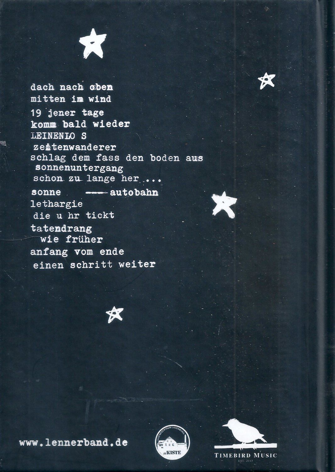 Künstler/in: Lenner Titel: und oben leuchten die sterne Zustand: Neuware Jahr: 2015 Format: CD mit Buch Gewicht: 290 g Beschreibung: Deluxe Edition CD und Buch mit Bildern und Liedtexten 44 Seiten