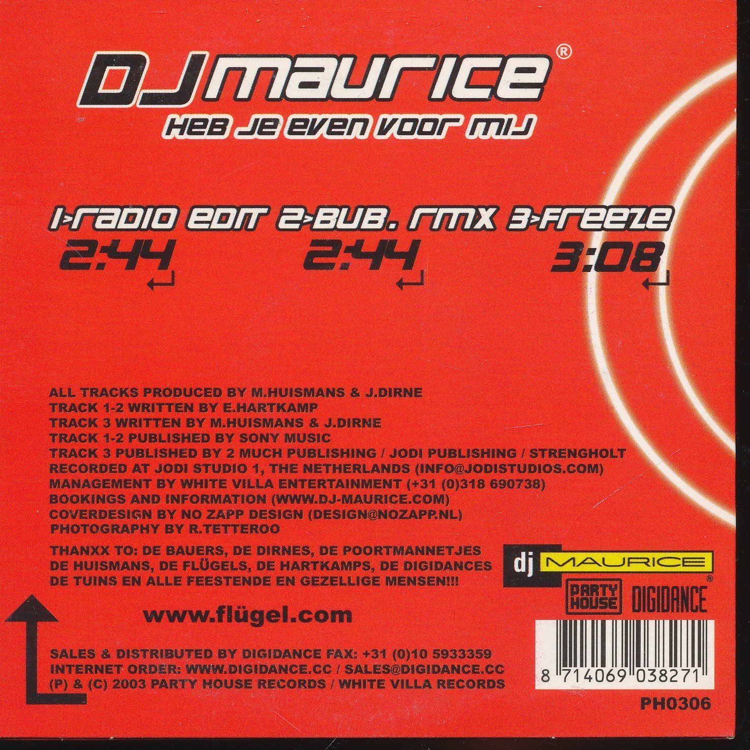 CD-Maxi: DJ Maurice: Heb Je Even Voor Mij (2003) Digidance PH0306