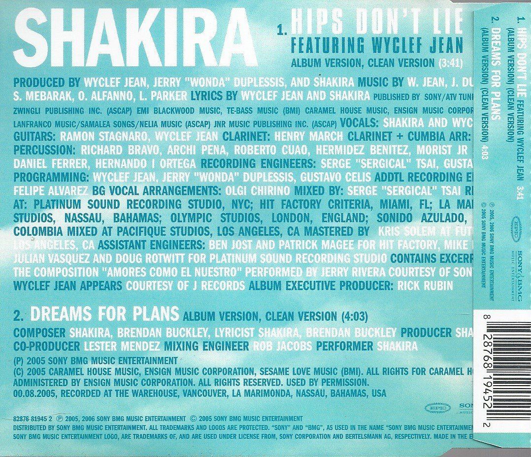 1.Hips Don´t Lie [Album Version, Clean Version - Feat. Wyclef Jean] 3:40