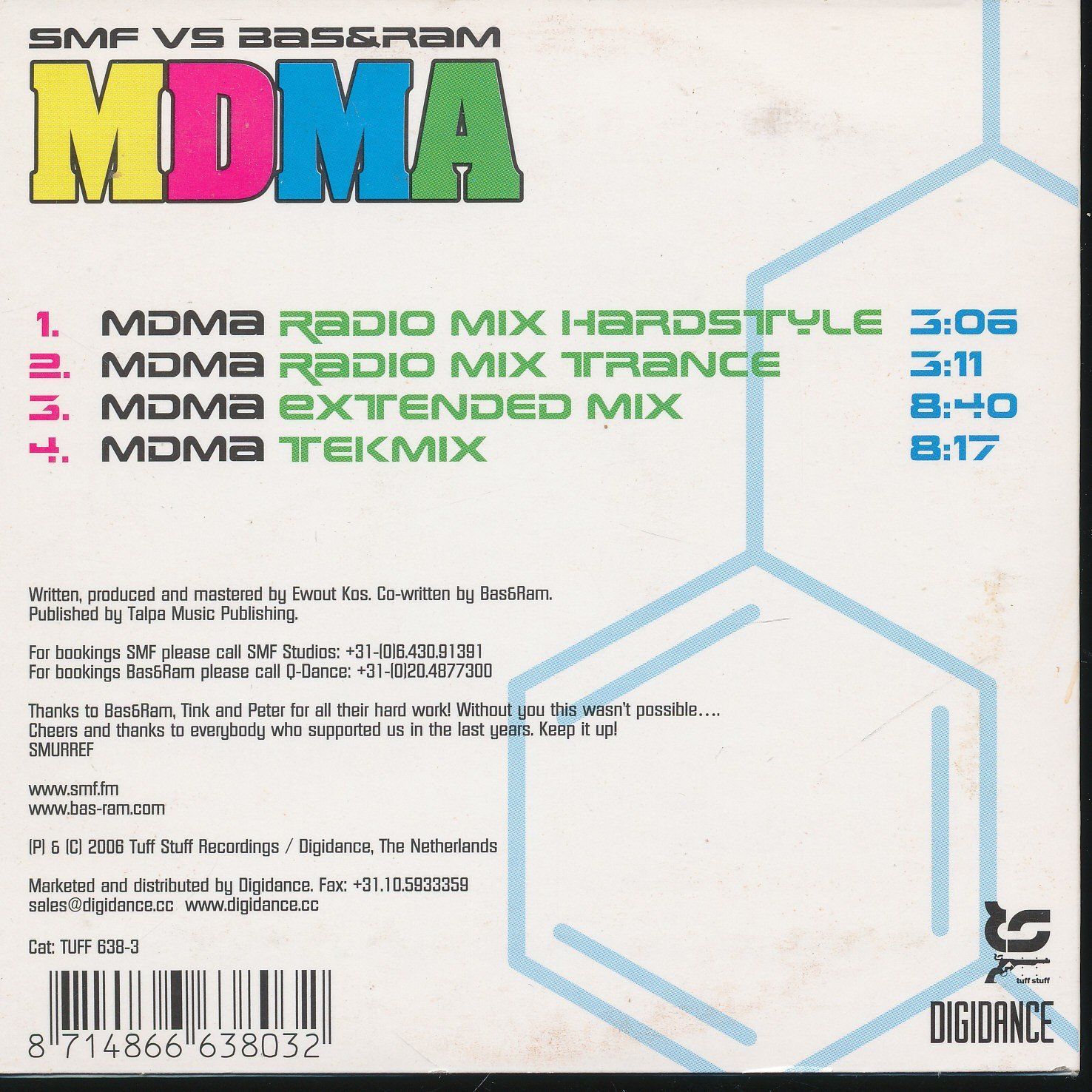 CD-Maxi: SMF vs. Bas & Ram: MDMA (2006) TUFF 638-3 Cardsleeve