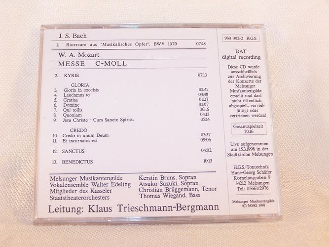 CD - Melsunger Musikantengilde - W.A. Mozart / Messe C-Moll - J.S. Bach ..., MMG 1998