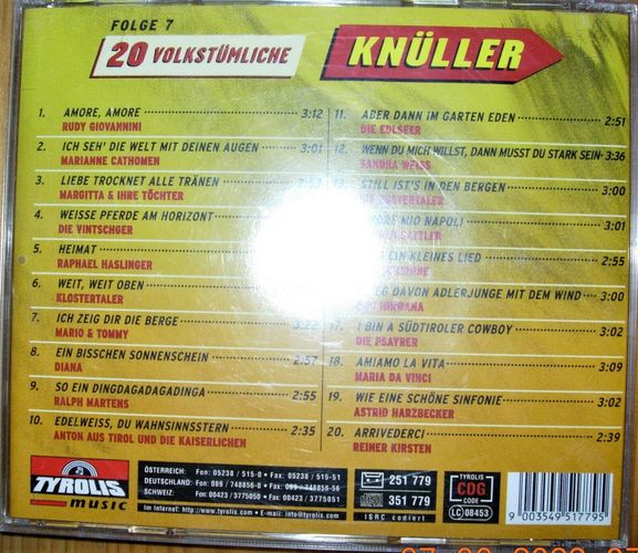 CD Sampler: "20 Volkstümliche Knüller Folge 7 - Mit den Stars der Volksmusik"
