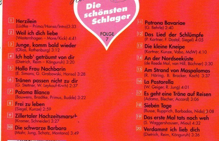 CD Sampler-Abum: "Die schönsten Schlager, Folge 7" (1989)