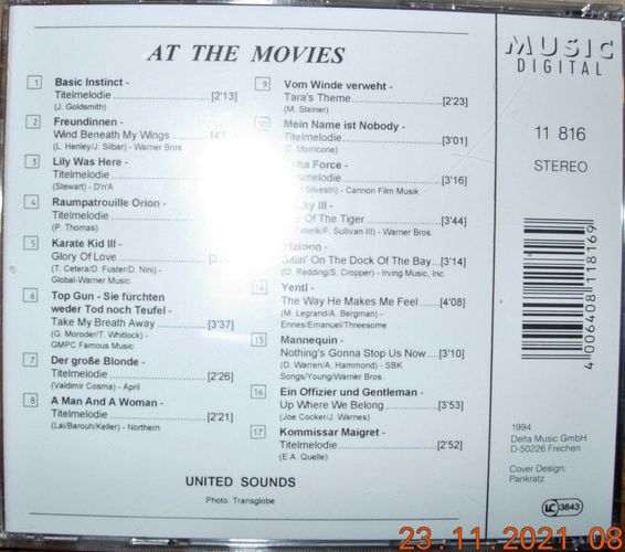 CD Sampler Album: "At The Movies" The Greatest Moviehits played by... (1994)