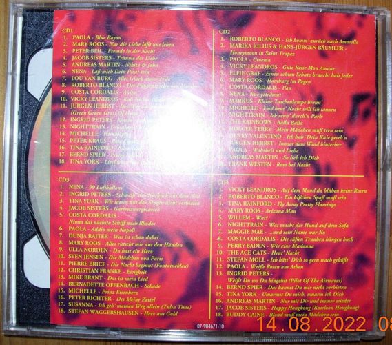 Sie bieten auf die Sampler-CD Deutsche Schlager - Gala, CD 3 & CD 4 . Das sind 36 Tracks auf 2 CDs. Bei einem €uro Startgebot ein echtes Schnäppchen! Und: sparen Sie Versandkosten, indem Sie noch weitere CDs von mir ersteigern! Trackliste CD3 1. Nena - 99 Luftballons 3:50 2. Ingrid Peters -