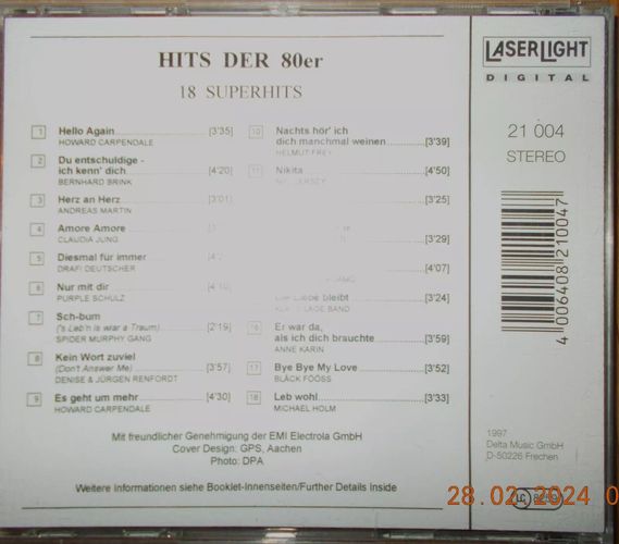 CD Sampler-Album: "Hits Der 80er - 18 Superhits" (1997)