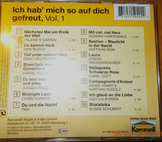 CD Sampler Album: "Ich Hab Mich So Auf Dich Gefreut, CD 1"