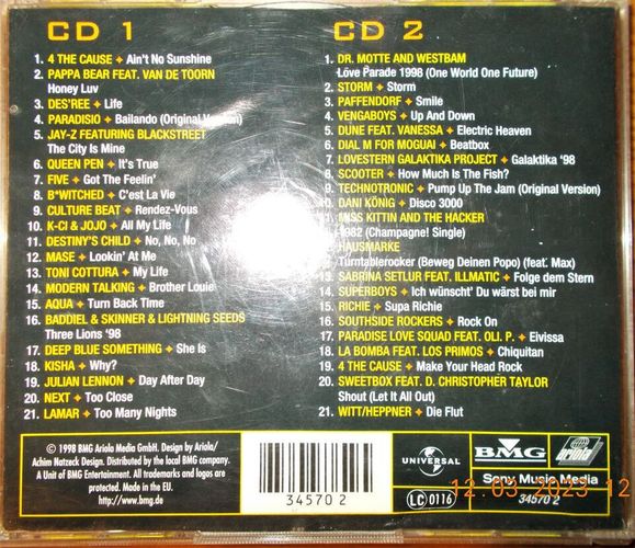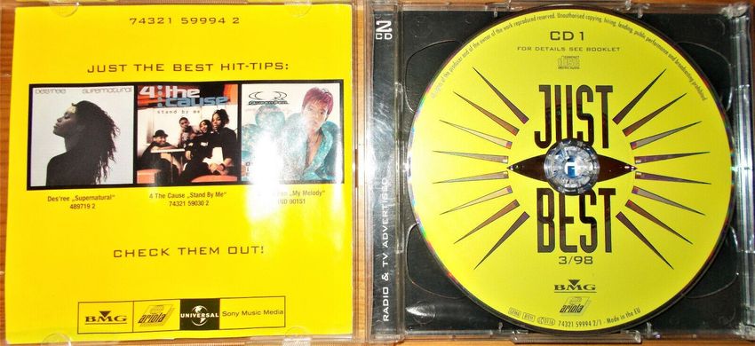 Sie bieten auf die Sampler-CD Just The Best Volume 3 98 . Das sind 42 Tracks auf 2 CDs aus den Genres Dance & Electronic, Pop, Rock, Rap, Hip Hop . Bei einem €uro Startgebot ein echtes Schnäppchen! Sie können Versandkosten sparen, indem Sie mehrere CDs etc. von mir ersteigern! Trackliste CD