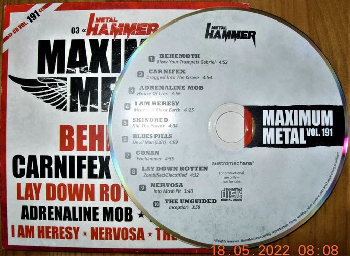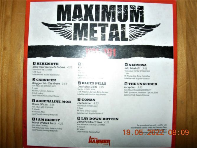 Sie bieten auf das Sampler-Album Maximum Metal Vol. 191 . Bei 1 €uro Startgebot ein echtes Schnäppchen! Sparen Sie Versandkosten, indem Sie gleich mehrere CDs von mir ersteigern! Trackliste 1 Behemoth – Blow Your Trumpets Gabriel 4:52 2 Carnifex – Dragged Into The Grave 3:54 3 Adren