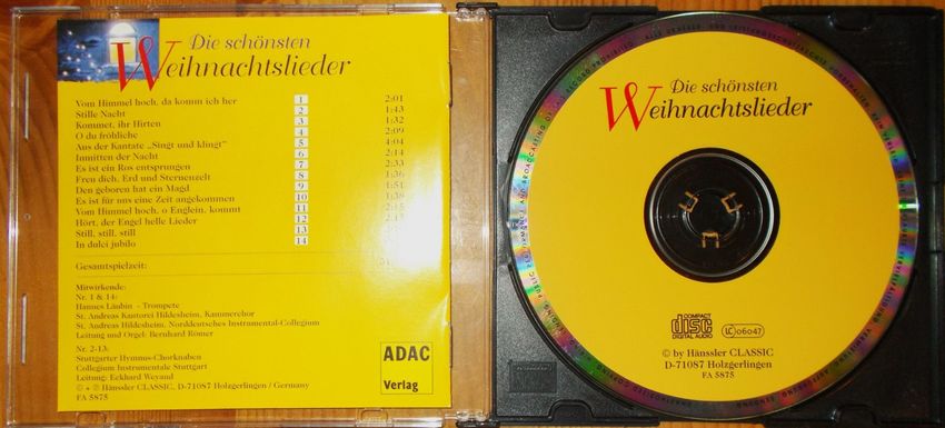 Sie bieten auf den Sampler Die Schönsten Weihnachtslieder . Das sind 14 Tracks auf einer CD. Bei einem €uro Startgebot ein echtes Schnäppchen! Und: sparen Sie Versandkosten, indem Sie noch weitere CDs von mir ersteigern! Trackliste