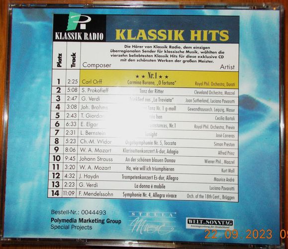 Sie bieten aud das Sampler-Album Klassik Hits - Gewählt von Klassik Radio Hörern . Auf der CD befinden sich 14 Songs, zu einem Startpreis von nur einem €uro ein echtes Schnäppchen! Sparen Sie Versandkosten, indem Sie mehrere CDs von mir ersteigern! Trackliste: 1 Royal Philharmonic Orchestra, Br