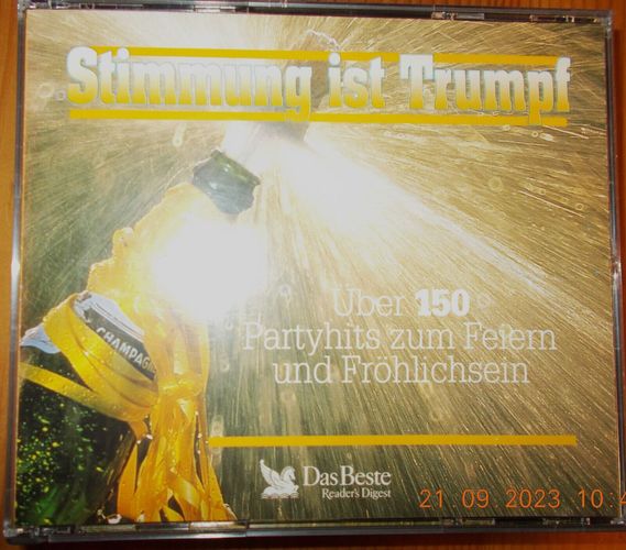 Sie bieten auf den Sampler Stimmung Ist Trumpf - Über 150 Partyhits zum Feiern und fröhlich sein . aus dem Genre Pop Schlager Partyhits. Das sind 61 Tracks auf drei CDs in einer CD-Box. Bei einem €uro Startgebot ein echtes Schnäppchen! Und: sparen Sie Versandkosten, indem Sie noch weitere CDs v