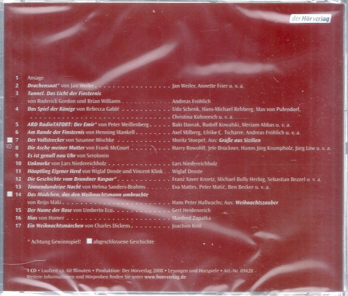 Titel: Schallwelten. Auszüge und Hörproben aus den aktuellen Produktionen des Hörverlags. Mit Texten von Jan Weiler, Rebecca Gablé. Franz Xaver Kroetz, Umberto Eco, Homer u. v. a. . Mit zwei abgeschlossenen Geschichten. Verlag: Der Hörverlag Format: CD Jahr: 2008 Sprache: Deutsch Spieldauer: 60 Min. Gewicht: 200 g Zustand: Neuware