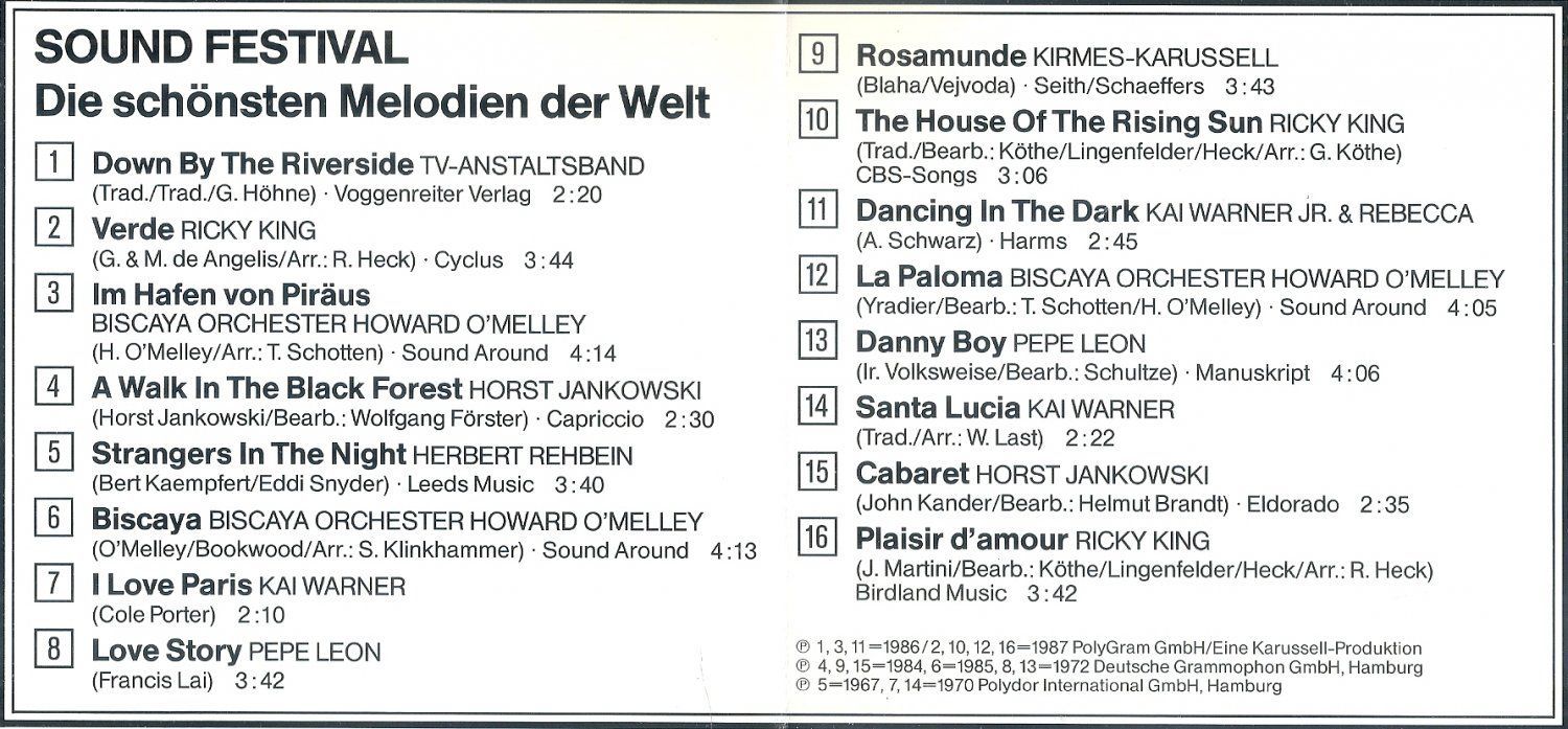 Künstler/in: TV-Anstaltsband, Ricky King, Biscaya Orchester Howard O´Melley, Horst Jankowski, Herbert Rehbein..