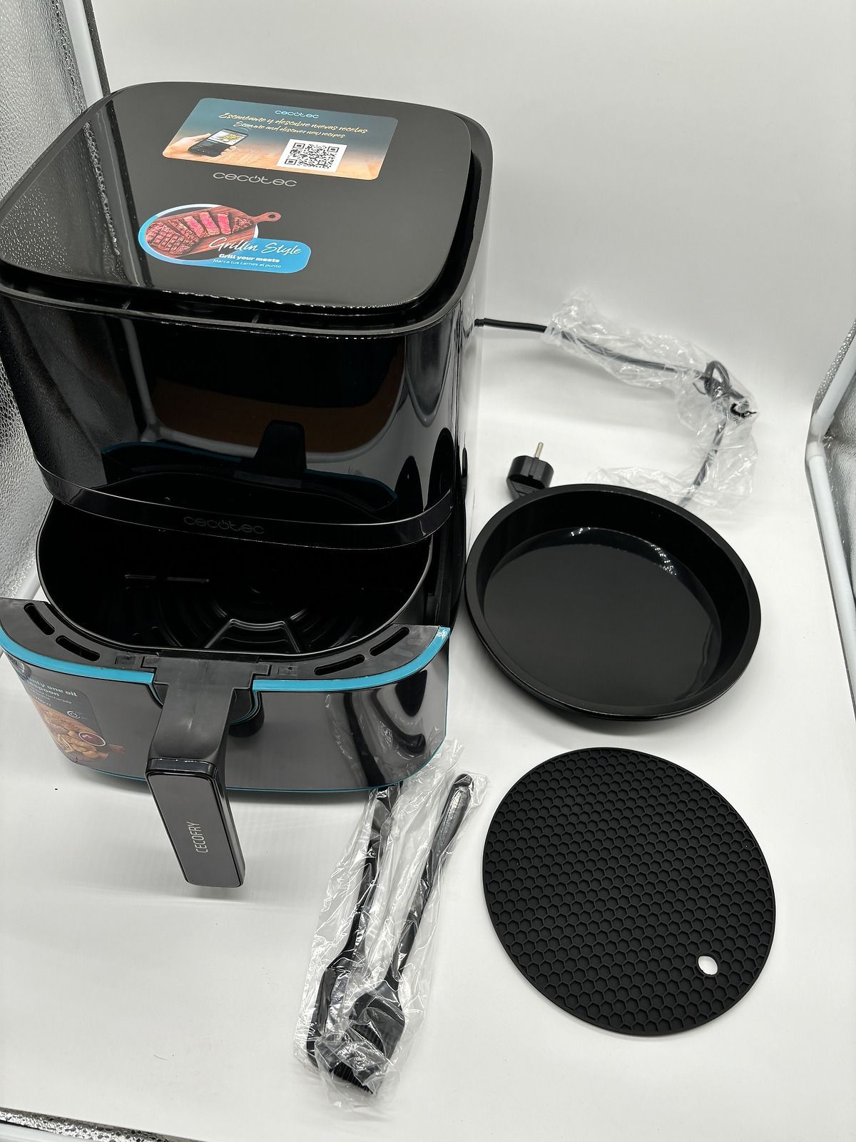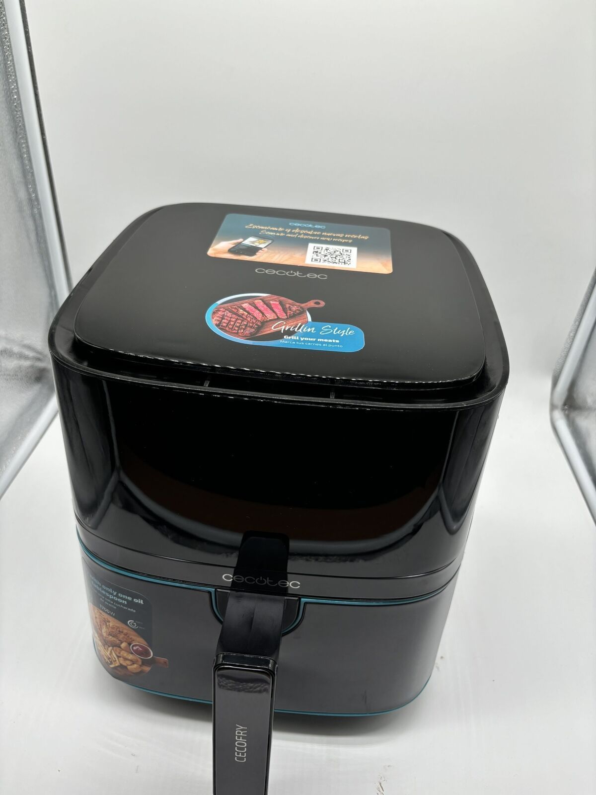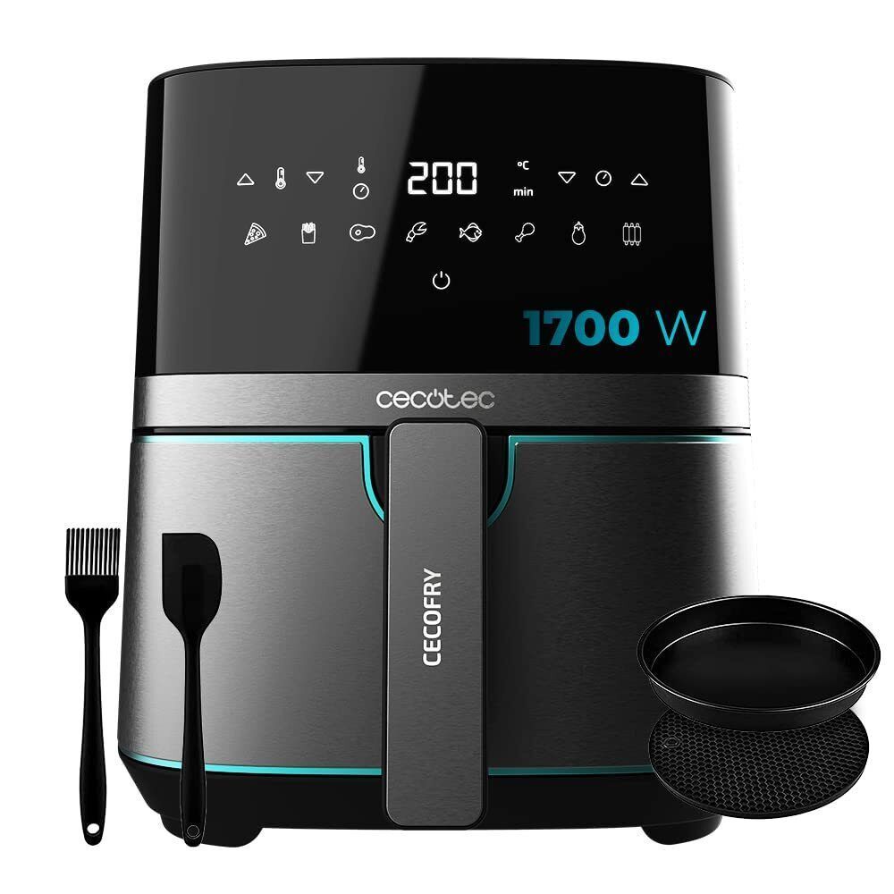 Cecotec Heißluftfritteuse 5,5 L Cecofry mit Zubehör. 1700W Edelstahlausführung,