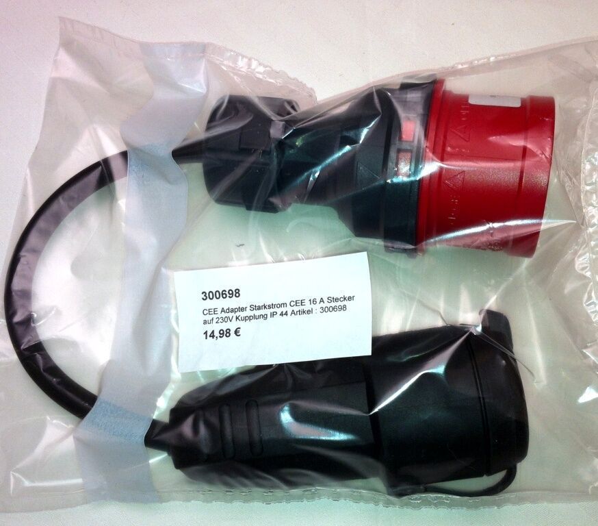 CEE Adapter Starkstrom 16 A CEE Stecker auf 230V Schuko Kupplung IP 44 300698
