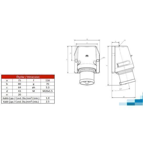 CEE Wandstecker Camping 3P 16A 230V IP44 0121