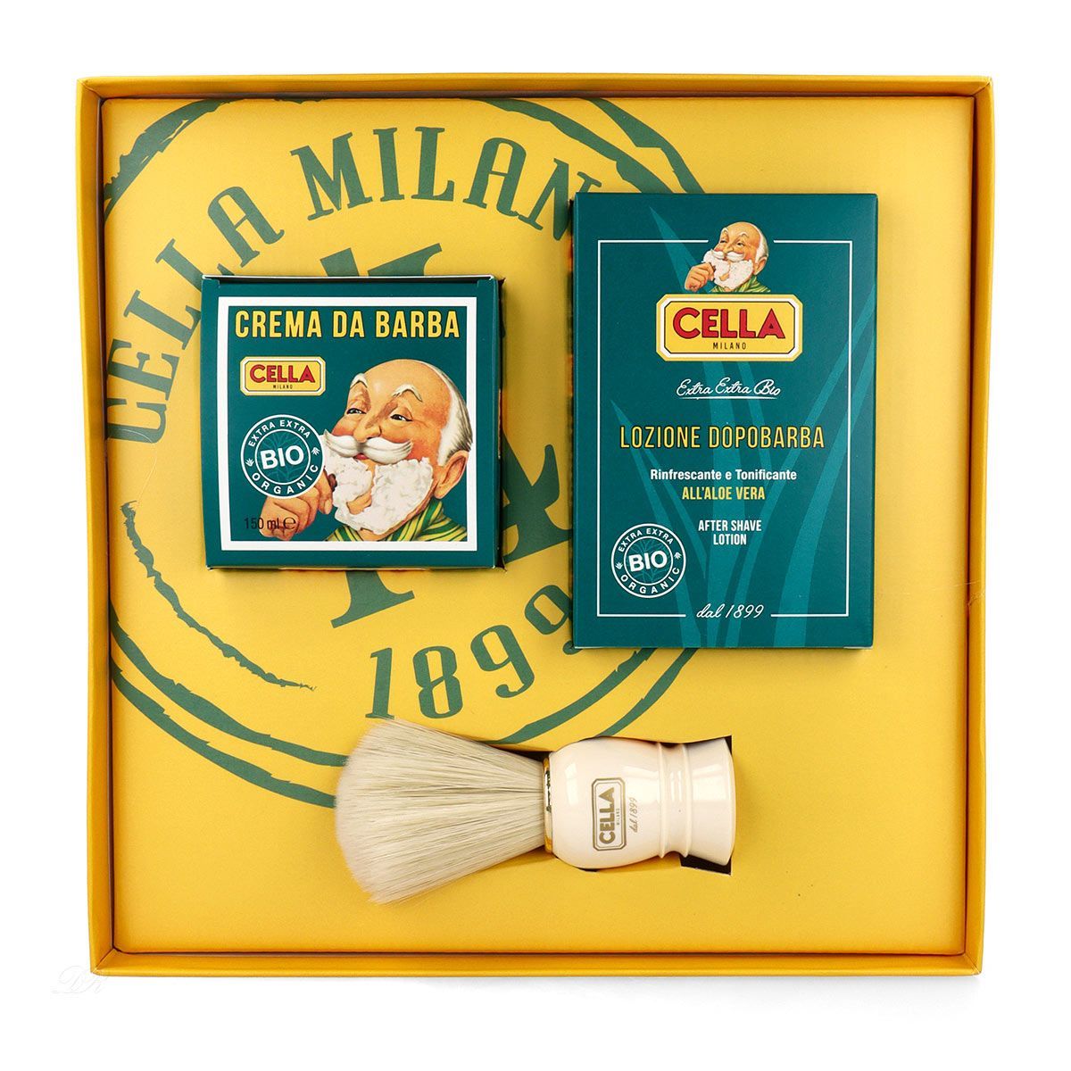 Cella BIO Geschenkset mit After Shave Lotion Aloe vera, Rasierseife & Rasierpinsel